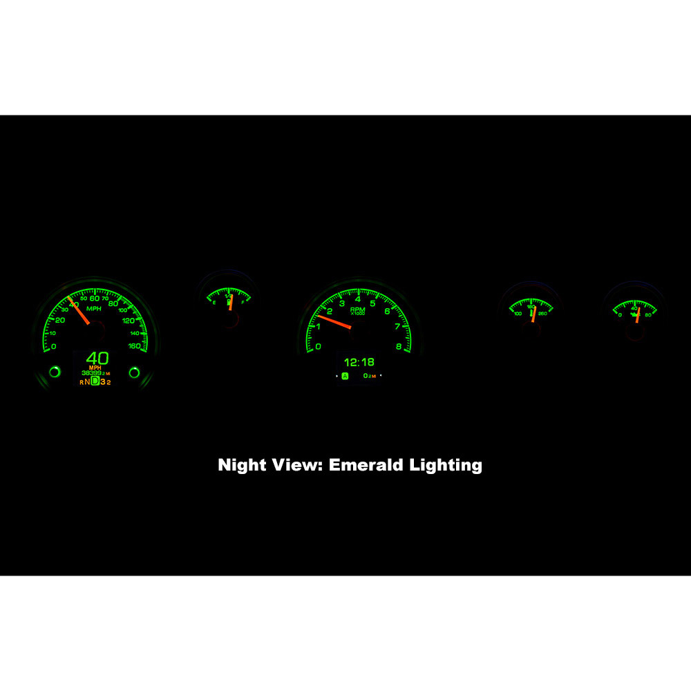 Available with your choice of black or silver alloy gauge-face styling, each HDX system allows you to select independent illumination colors for the gauge readings and needles, as well as the message centers. Calibration and personal settings are manipulated with the built-in, capacitive-touch buttons, or the available Bluetooth app for Apple and Android devices. Each needle hub is black nickel plated spun-aluminum to match the buttons. All HDX instrument systems feature dead-faced indicators (turn signals, high beam, check engine, cruise control, parking brake, plus two user-definable), and a red, settable warning light for each gauge.