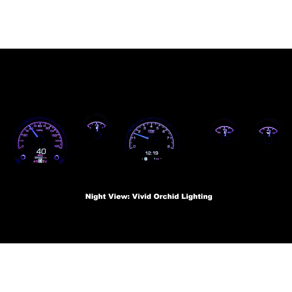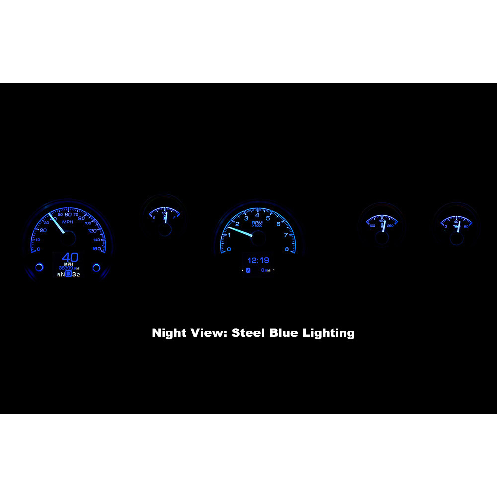 Available with your choice of black or silver alloy gauge-face styling, each HDX system allows you to select independent illumination colors for the gauge readings and needles, as well as the message centers. Calibration and personal settings are manipulated with the built-in, capacitive-touch buttons, or the available Bluetooth app for Apple and Android devices. Each needle hub is black nickel plated spun-aluminum to match the buttons. All HDX instrument systems feature dead-faced indicators (turn signals, high beam, check engine, cruise control, parking brake, plus two user-definable), and a red, settable warning light for each gauge.