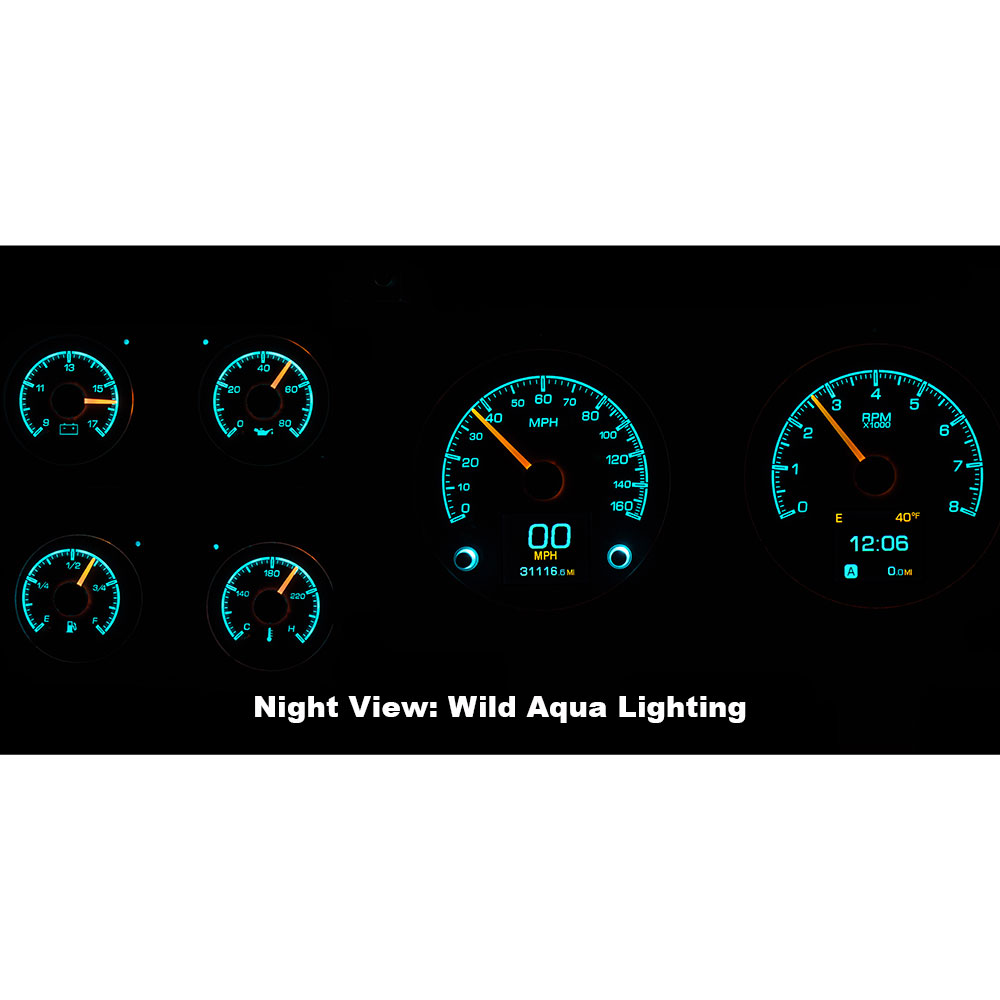 This Dakota Digital HDX gauge kit features a big speedo and tach front and center with the satellites to the side. Complete with TFT-display in each large opening for the utmost in customization; view any parameters you like while the integrated buttons make calibration a cake-walk. Stick this in your 1973-91 Blazer, Suburban or heavy duty pickup too!