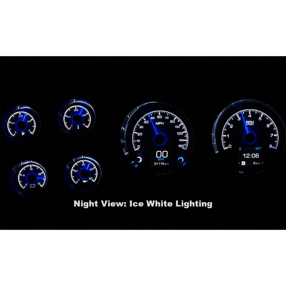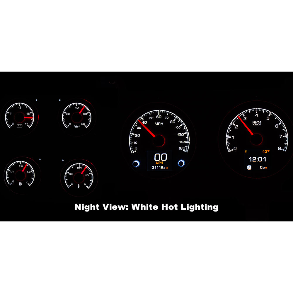 Available in two color options of black or silver alloy gauge-face styling, each HDX system allows the user to select and change their favorite illumination color for the gauge readings and needles, as well as the TFT message center displays. Red, Green, Blue LEDs are incorporated into the circuit boards for fully-adjustable display colors (over 30 color options), allowing the user to personalize their gauge lighting to match nearly any vehicle theme.
