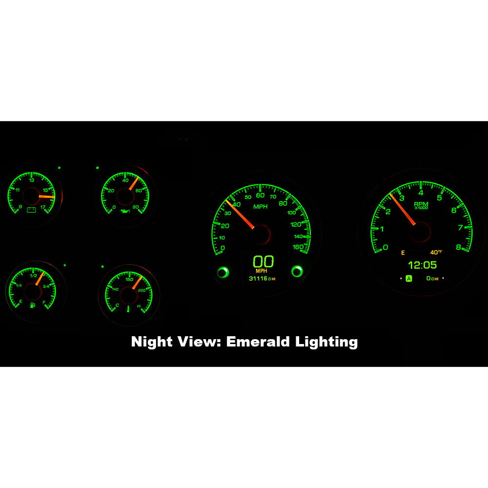 The HDX series from Dakota Digital is the very latest in aftermarket automotive gauge technology. HDX takes personalization and usability to an entire new level while retaining all the features of the popular VHX-series gauges such as LED backlighting for the numbers, tick marks and indicators lights only visible when light up (turn signals, high beam, check engine, cruise control engaged and parking brake). These features add up to a clean, easy to read instrument system in all conditions. Precision stepper motors provide accurate needle movement along with a full-sweep gauge movement at key-on, and the needle hubs are black nickel plated spun-aluminum.