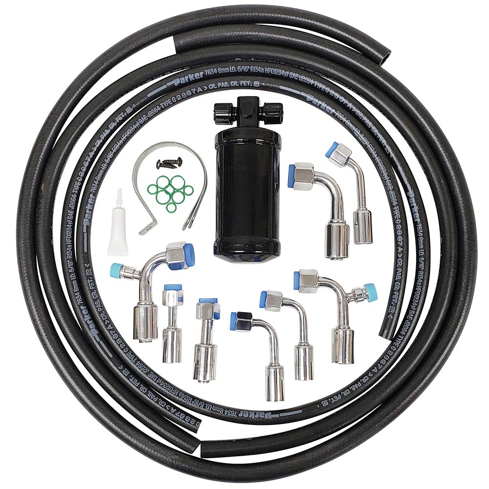 Polished Aluminum Fitting Reduced Barrier Hose Kit with Black Drier