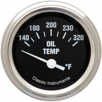 The Hot Rods Series 2-1/8" Water Temp Gauge C Normal H Range Stainless Low Step Bezels and Curved Glass Lens.