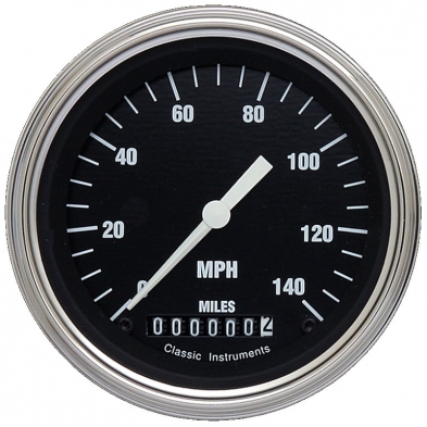 The Hot Rods Series 3-3/8" Speedometer 0-140 mph Range Stainless Low Step Bezels and Flat Glass Lens.