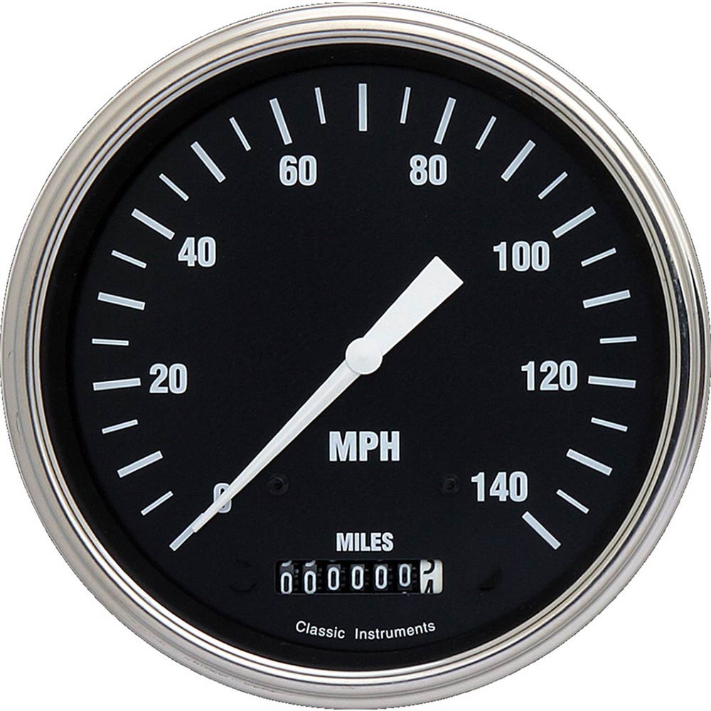 The Hot Rods Series 4-5/8" Speedometer 0-140 mph Range Stainless Low Step Bezels and Curved Glass Lens.