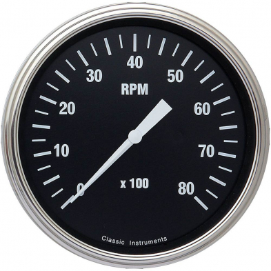 The Hot Rods Series 4-5/8" Tachometer 0-8000 rpm Range Stainless Low Step Bezels and Curved Glass Lens.