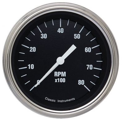 The Hot Rods Series 3-3/8" Tachometer Gauge 0-8000 rpm Range Stainless Low Step Bezels and Flat Glass Lens.