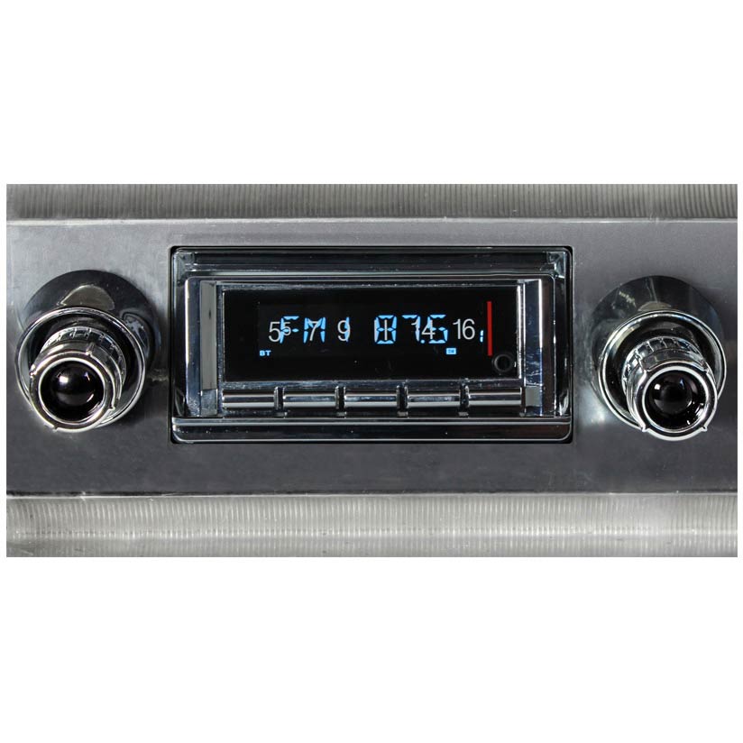 The USA-740 offers the same classic look that Custom Autosound has always been known for with today’s latest features. Now, with built-in Bluetooth (microphone included), answer calls and get Bluetooth streaming music from your Bluetooth capable phone or Bluetooth compatible device. Match the dominant color of your instrument cluster with user selectable multiple LCD color choices with LCD dimmer control. The AM/FM RDS tuner shows station, song and artist on the LCD display. Fully controls optional CD-1 CD player. Classic style with today’s sound and performance taking every road and curve with you in your vintage vehicle.