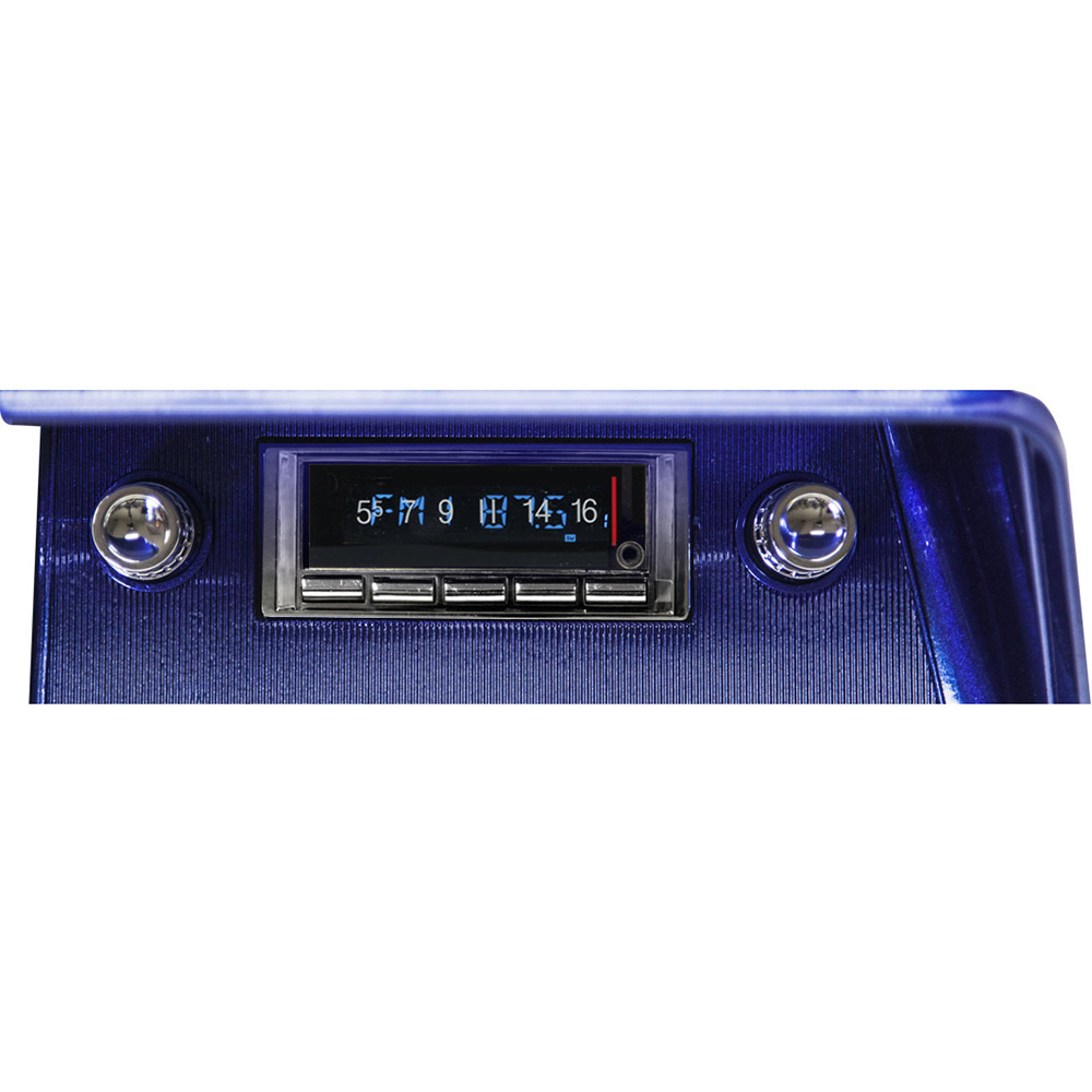 The USA-740 offers the same classic look that Custom Autosound has always been known for with today’s latest features. Now, with built-in Bluetooth (microphone included), answer calls and get Bluetooth streaming music from your Bluetooth capable phone or Bluetooth compatible device. Match the dominant color of your instrument cluster with user selectable multiple LCD color choices with LCD dimmer control. The AM/FM RDS tuner shows station, song and artist on the LCD display. Fully controls optional CD-1 CD player. Classic style with today’s sound and performance taking every road and curve with you in your vintage vehicle.
