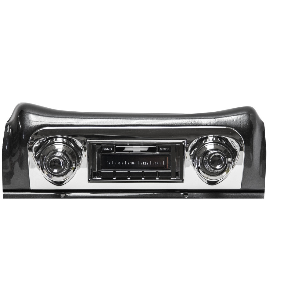 Custom Autosound's USA-630 is designed to provide the best in audio technology wrapped in a classic car stereo look. It will fit your car or truck's stock dash without any modifications required. It has been designed with a bezel containing your car's manufacturer logo as well as large OEM style push-buttons to compliment your dash.