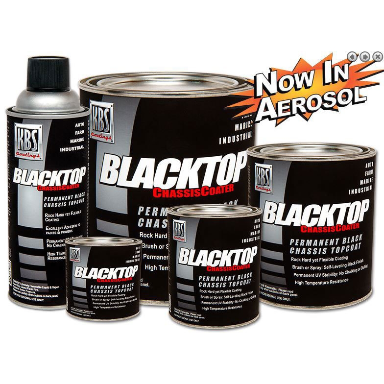• Like RustSeal, BlackTop dries to a rock hard yet flexible coating that can be readily applied to chassis, coil springs and light weight panels. BlackTop also has high heat resistance and can be applied to almost all automotive applications except exhaust systems.