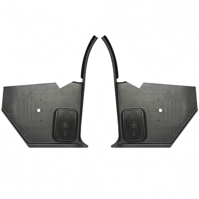 Kickpanels with speakers were developed by Custom Autosound in the 1980's to enhance the sound quality of your radio by adding custom speaker assemblies to classic cars and trucks. While their kickpanels enhance the interior appearance of your ride, they provide great sound and install with no modifications to your vehicle. They are designed to custom fit perfectly with the door panels on your classic car or truck. They are built with black ABS plastic and can be painted to match the interior of your vehicle.