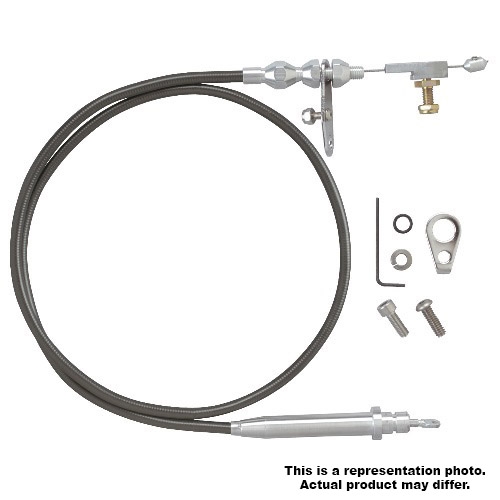 “U-Cut-to-Fit” Kickdown Cables are designed with a specially extruded liner for extended life of the cable. Kickdown features aluminum fittings with ferrule to eliminate frayed cable ends. Kickdowns are adaptable for all types of manifolds including tunnel ram, blower manifolds and Weber induction systems. Complete instructions included in kit. (Carburetor Bracket and Return Springs sold separately.)