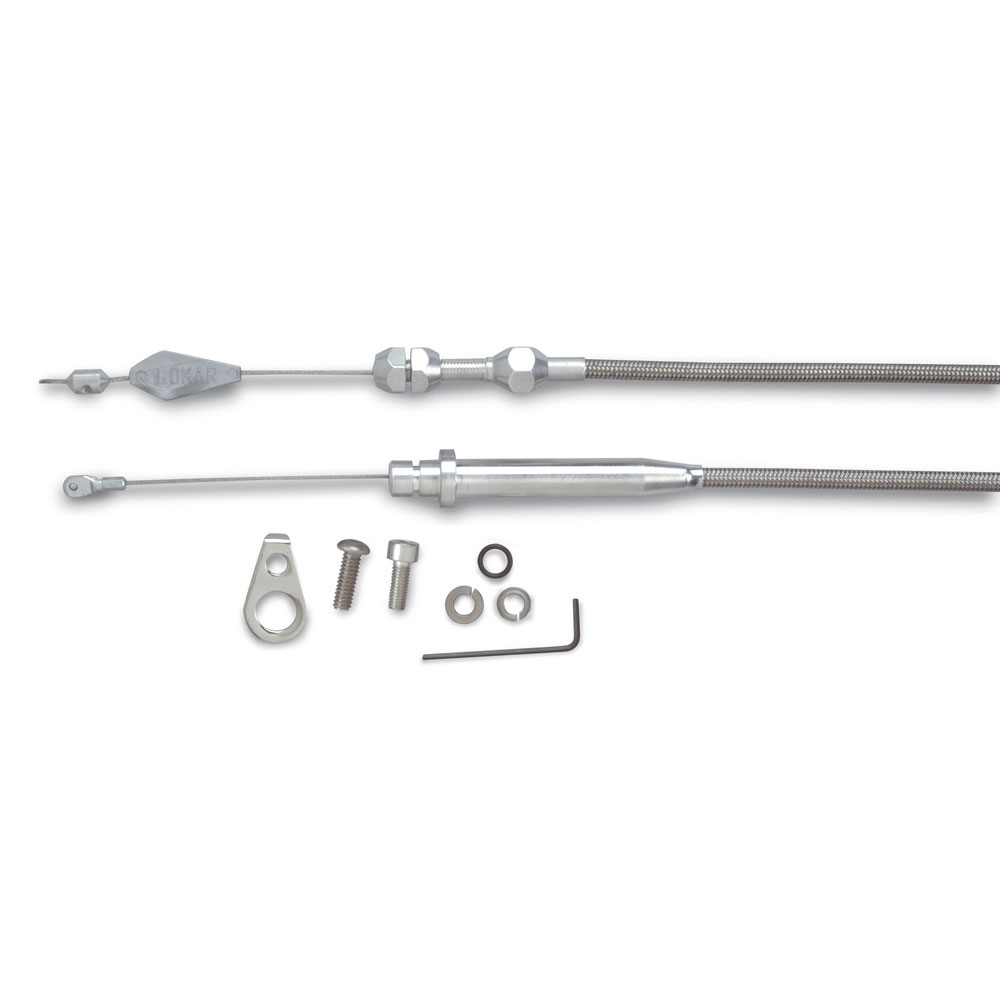 “U-Cut-to-Fit” Kickdown Cables are designed with a specially extruded liner for extended life of the cable. Kickdown features aluminum fittings with ferrule to eliminate frayed cable ends. Kickdowns are adaptable for all types of manifolds including tunnel ram, blower manifolds and Weber induction systems. Complete instructions included in kit. (Carburetor Bracket and Return Springs sold separately.)