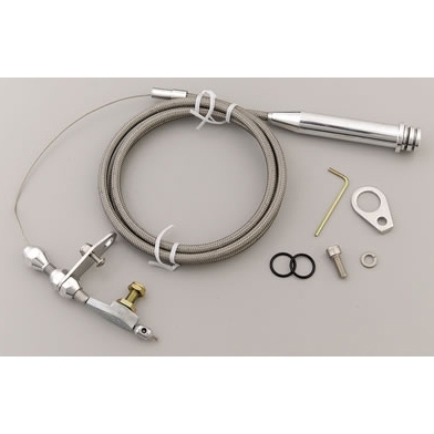 “U-Cut-to-Fit” Kickdown Cables are designed with a specially extruded liner for extended life of the cable. Kickdown features aluminum fittings with ferrule to eliminate frayed cable ends. Kickdowns are adaptable for all types of manifolds including tunnel ram, blower manifolds and Weber induction systems. Complete instructions included in kit. (Carburetor Bracket and Return Springs sold separately.)