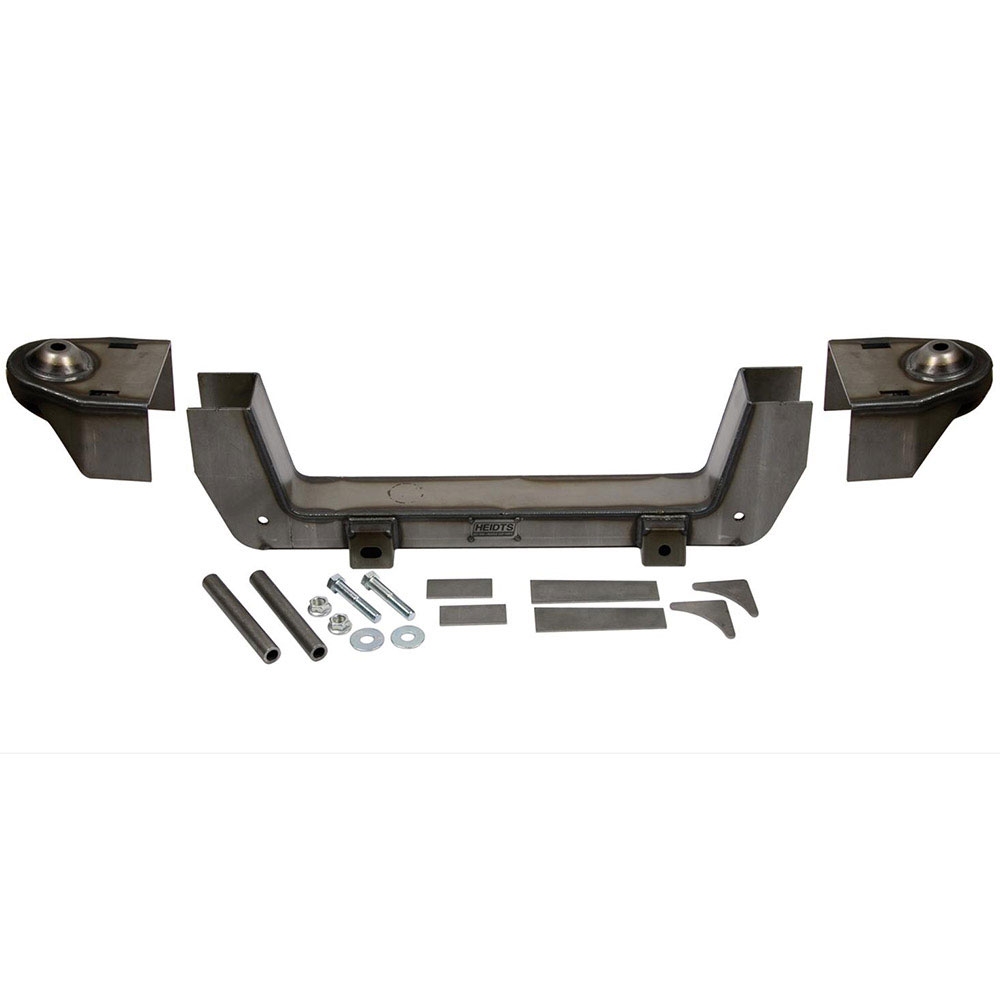 This is a Heidt's Universal Mustang II independent front suspension kit. This kit includes crossmember, tubular control arms, 11" iron rotors with GM single piston calipers, stock or drop spindles, shocks with springs and manual rack and pinion. Please Note the track width is 56" wide.