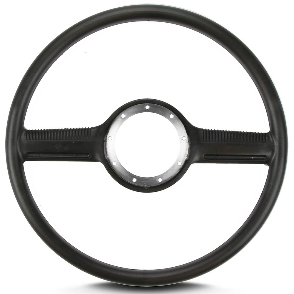 This steering wheel brings back feelings of the best of times from an older era. Like the original equipment wheels of the 40's-60's, the Mark 10 features a 15" hard paintable rim with an optional functional horn ring. Available primed and ready for your paint or glossy black. Now there's a steering wheel that looks like it belongs in your fat fendered beauty. Shown with optional horn button ring, sold separately.