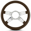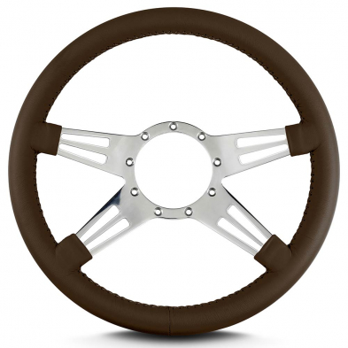 This is a Lecarra Mark 9 Double Slot 14" Steering Wheel, it has 4 aluminum spokes with a 2 slots per spoke. This steering wheel has polished spokes and a Dark Brown Leather Grip. These start out with one piece of 6061 T-6 aircraft grade of billet aluminum that is cut out as one piece of aluminum so there are no welds.