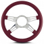 This is a Lecarra Mark 9 Double Slot 14" Steering Wheel, it has 4 aluminum spokes with a 2 slots per spoke. This steering wheel has polished spokes and a Burgundy Leather Grip. These start out with one piece of 6061 T-6 aircraft grade of billet aluminum that is cut out as one piece of aluminum so there are no welds.