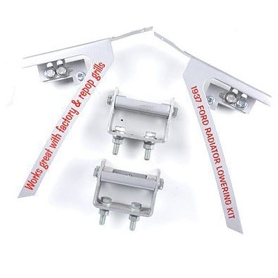 By lowering the radiator in a ‘37 from it’s stock location, you vastly improve the looks of the engine compartment and also position the radiator for better cooling efficiency & the use of the die stamped radiator & grille cover.
