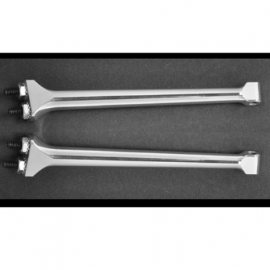 These arms bolt to your vehicle with two 10-24 screws. Arms are 5-1/2". Arms angle up 20 degrees and angle back 10 degrees. Mount base is 1" x 1/2". Mount holes are 1/2" apart. Comes with rubber gasket. Comes in a show polished finish. Sold in pairs. Mirror heads sold separately.
