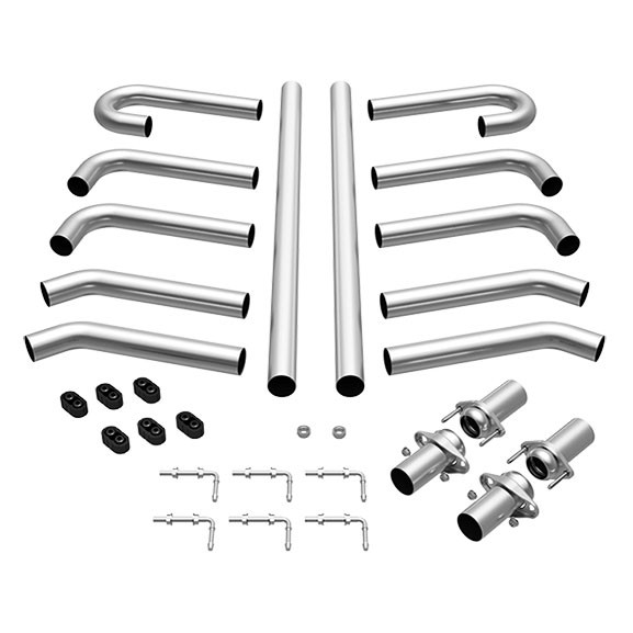 MagnaFlow Performance Exhaust Custom Builder/Hot Rod Kit is the perfect starting point for your one-off exhaust system. When 'off the shelf' won't cut it, our kits are there to help you create an exhaust system to fit your needs. Designed to include all of the basic building blocks needed for your system, including an array of hangers and flanges, as well as, straight pipes, and mandrel-bent J-, U- and L-bends, you can piece together your custom exhaust however you choose. MF Custom builder pipe kits are a pipe only design exhaust system with all the necessary tubing and hangers to install giving the user the opportunity to select their own muffler and tip best suited for that application. Available in various diameters and backed by MagnaFlow's Lifetime Warranty, there is no reason to go any other route. Be sure to include a set of polished MagnaFlow performance mufflers to finish that truly one-off exhaust system.