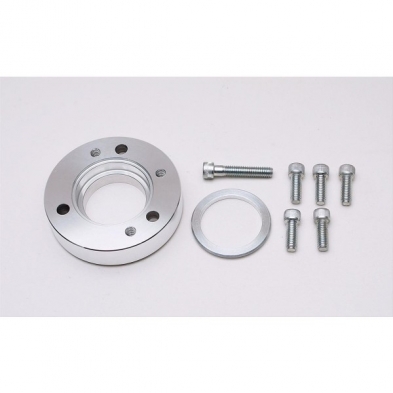 Billet Aluminum Balancer Spacer for Ford 289-302-351W using OEM 3 Bolt Balancer to 4 Bolt Crank Pulley with a total width of .9375". This item includes balancer spacer and mounting hardware.