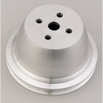 Aluminum High Water Flow Ratio Single Groove Water Pump Pulley for Ford Small Block 289, 302, 351W, 351C, 351M and 400M Engines with 4 Bolt Damper Standard Rotation Water Pump with Driver Side Lower Radiator Hose. This Pulley is designed to Replace Factory V-belt or Steel Serpentine Pulleys.