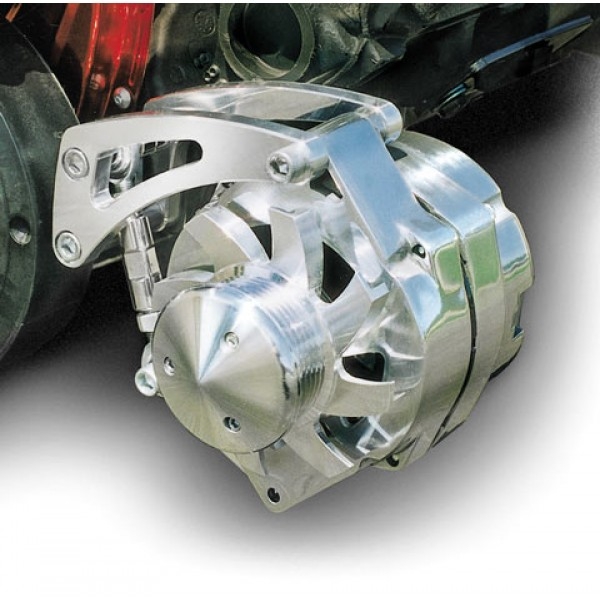 This is a low mount driver side alternator bracket kit for Chevy small blocks with short water pumps. Alternator bracket fits serpentine and V-belt applications. Comes complete with tensioning rod and mounting hardware. Powder coated to eliminate polishing.