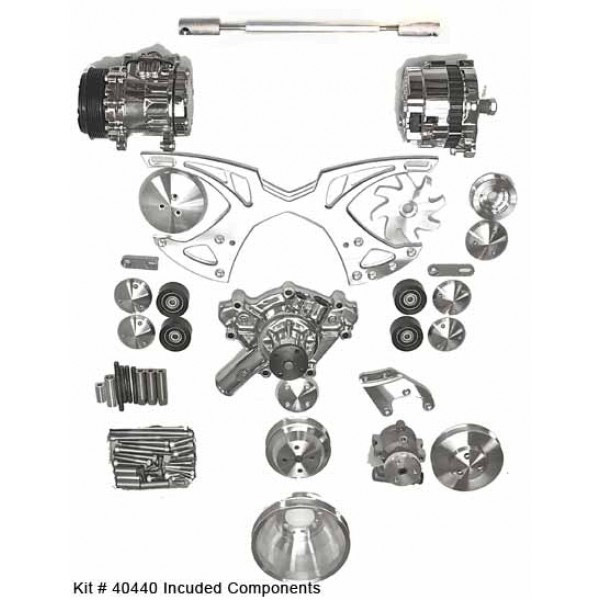 Mopar SB Style Track Alt, A/C, PS, Pulley & Bracket - Polish