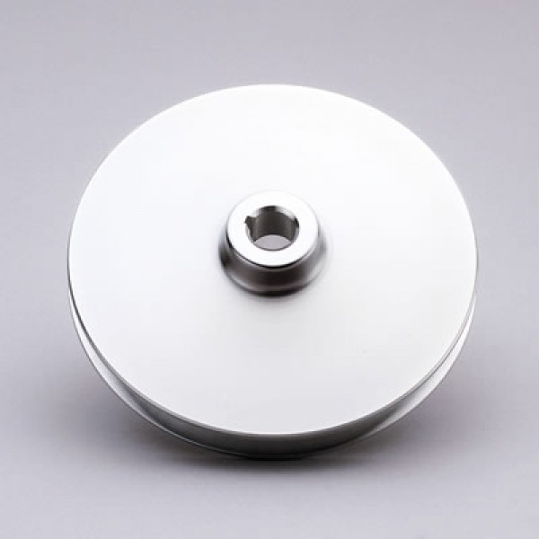 This aluminum single groove V-belt Saginaw keyway power steering pulley for Chevy Small and Big Block with Long Water Pump and Chrysler Small and Big Block engines. Fits 1966-74 Saginaw power steering pumps with a 5/8" keyway shaft.