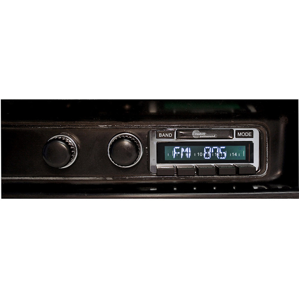 Custom Autosound's USA-630 is designed to provide the best in audio technology wrapped in a classic car stereo look. It will fit your car or truck's stock dash without any modifications required. It has been designed with a bezel containing your car's manufacturer logo as well as large OEM style push-buttons to compliment your dash.