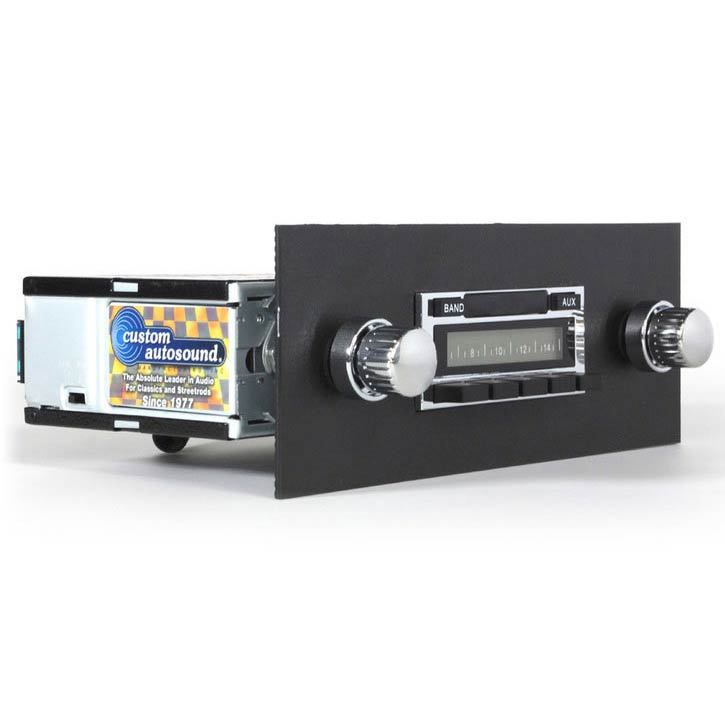 Custom Autosound's USA-230 is an excellent choice for classic car or truck enthusiasts looking for a more affordable radio without sacrificing quality electronics and a classic stereo look. It has been designed to fit in the stock dash without any modifications required. The USA-230 has the same appearance and all of the features offered in our USA-630 model simply without USB port, iPod dock and CD changer control.