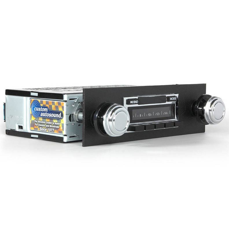 Custom Autosound's USA-630 is designed to provide the best in audio technology wrapped in a classic car stereo look. It will fit your car or truck's stock dash without any modifications required. It has been designed with a bezel containing your car's manufacturer logo as well as large OEM style push-buttons to compliment your dash.