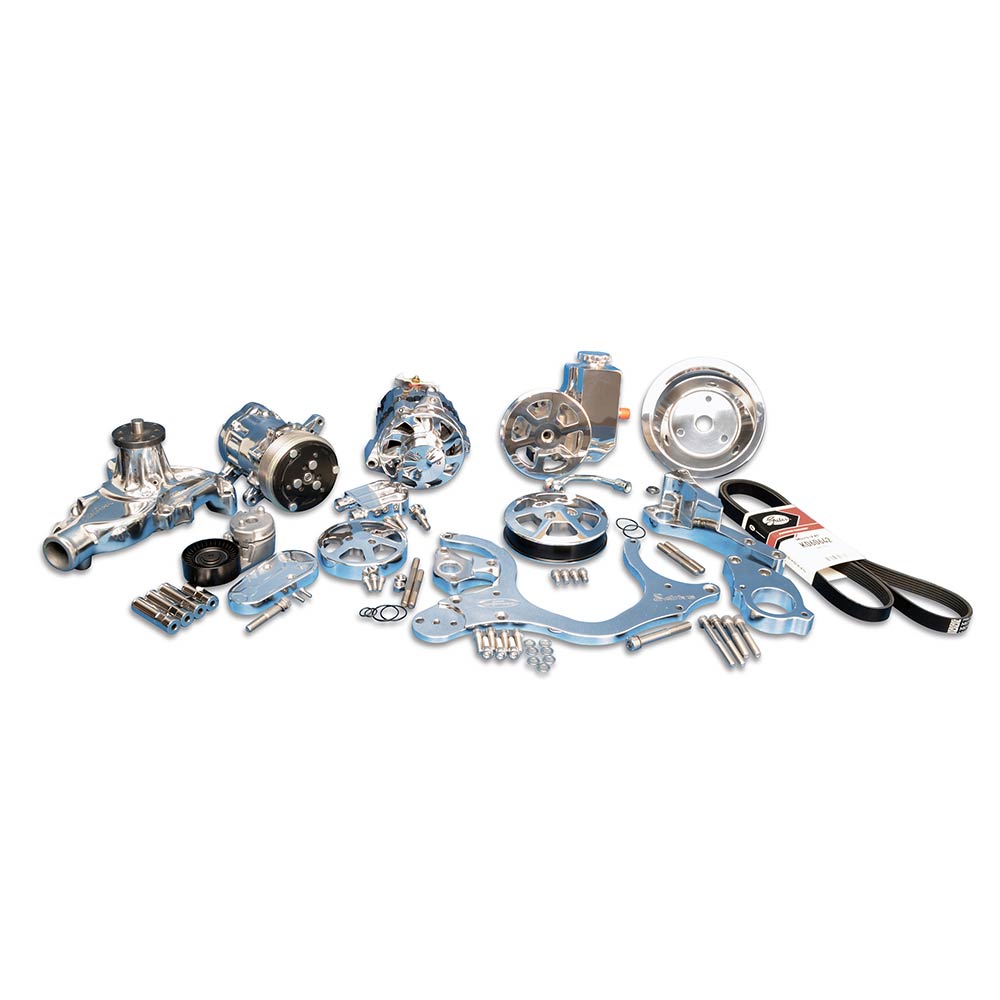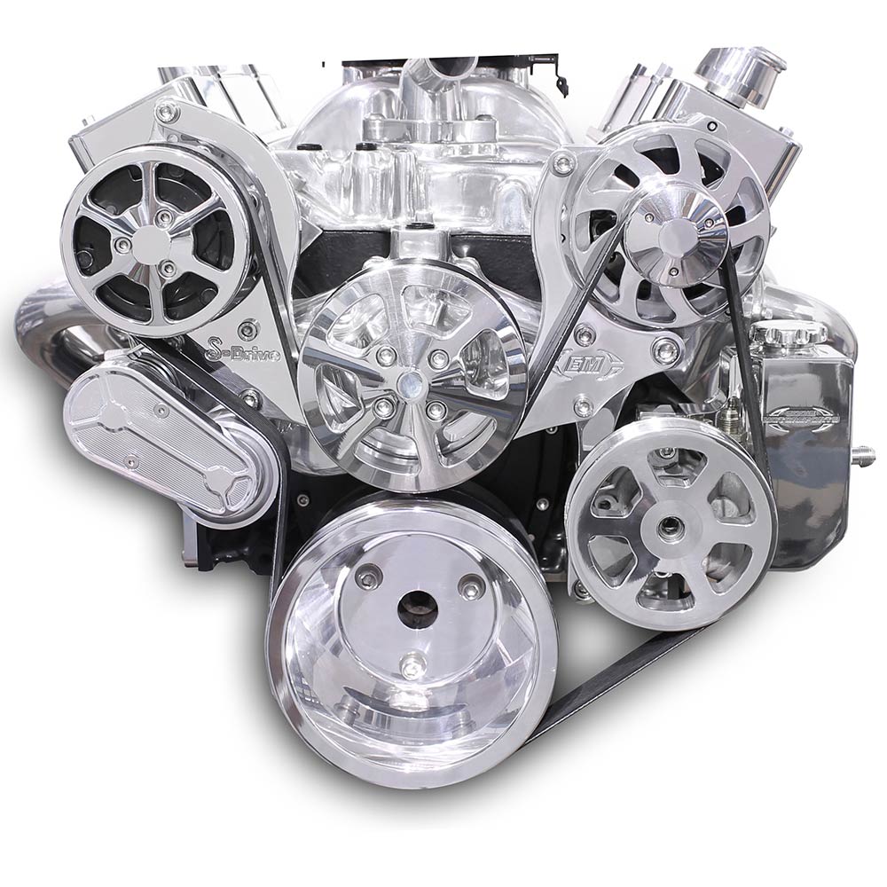 SB Chevy S-Drive Serp Kit w/Billet Reservoir - Clear Coated