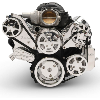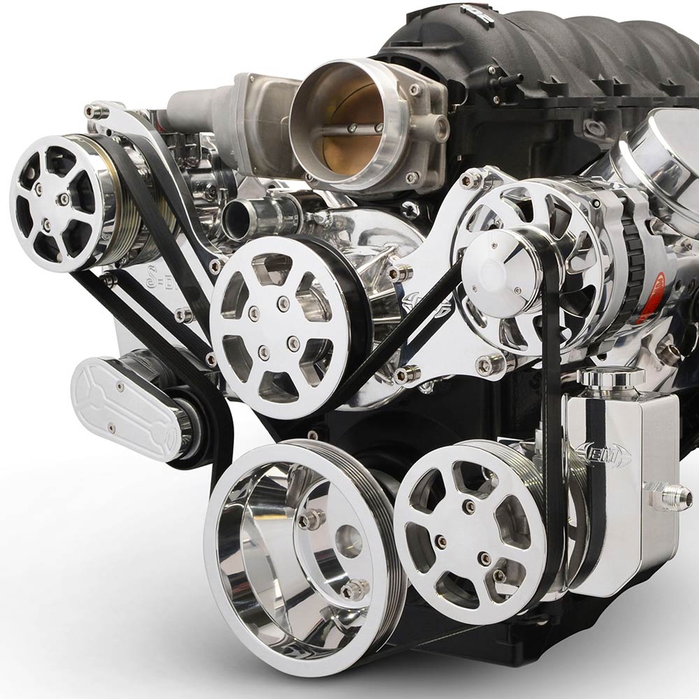 LS Chevy S-Drive 8-Rib Serp Kit with Billet Res - Clear Coat