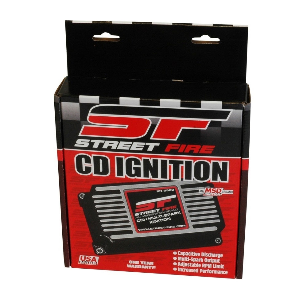 The Street Fire Capacitve Discharge Ignition is perfect for performance enthusiasts with a tight budget. The ignition offers capacitive discharge technology and will fire a series of multiple sparks that last for 20° of crankshaft rotation when the engine is running at lower rpm. This ensures combustion of the air/fuel mixture and produces great throttle response and smooth idle. The CDI is built around a durable cast aluminum housing and easily connects to points, amplifiers and magnetic pickup distributors. An adjustable rev limiter will protect the engine in the event of driveline failure. This rpm is adjustable with rotary dials in 100 rpm increments. If you have a 4, 6 or 8-cylinder engine, the Street Fire CDI will connect and fire it up! Covered by CARB E.O. # D-40-43