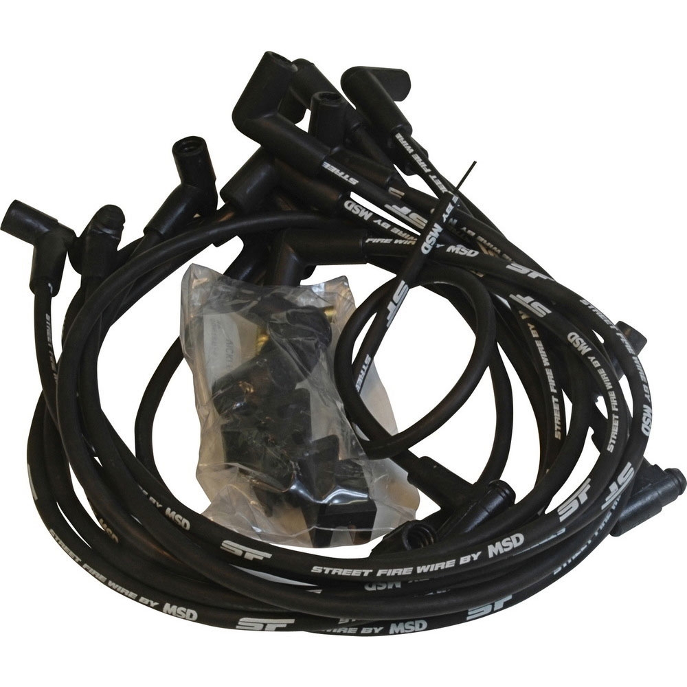 The terminals are covered in black boots that protect the conductor from engine heat to ensure spark delivery. The Street Fire Spark Plug Wires feature a low resistance conductor that's wrapped in a sleek and durable black sleeve.