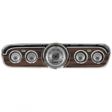 The 1965-66 Mustang Package All American Series with 3-3/8" Speedometer and 2-1/8" Fuel (75-10 ohm), Oil, Temp and Volt Gauges. Alsoincludes high beam indicator installed in speedometer. The package is complete with necessary sending units, turn signal bulbs and a gauge mounting bracket designed to work with your existing stock or reproduction bezel.