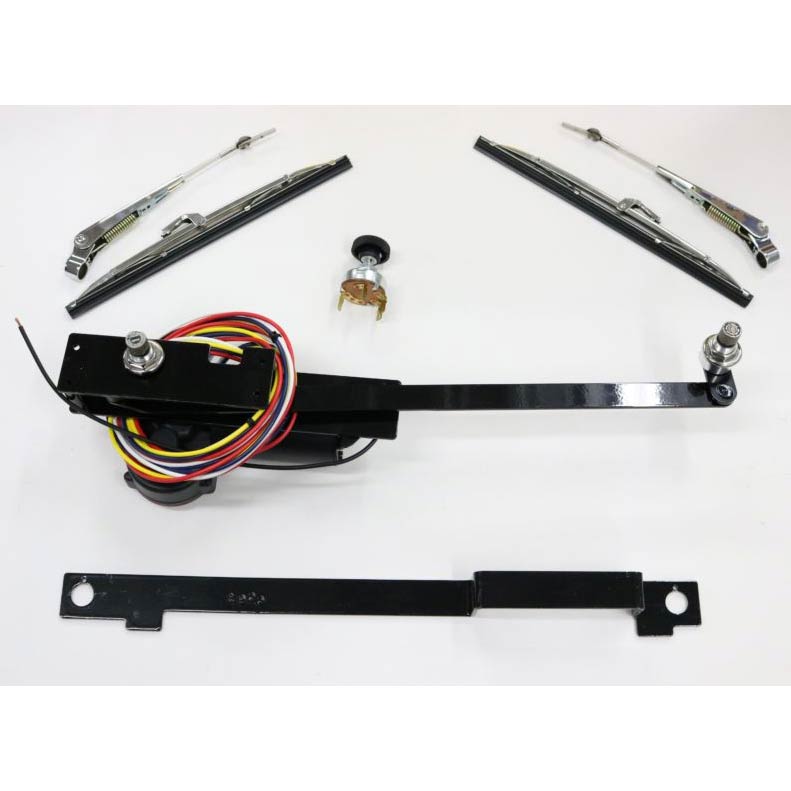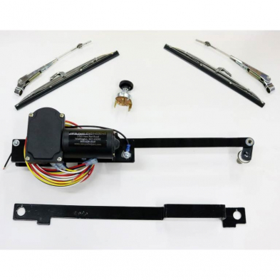 This is the solution to your windshield wiper problems for your 1928-29 Model A Truck. This kit is a complete system utilizing New Port Engineering's cutting edge technology designed to fit in the stock header panel and improve the driveability of your vehicle. This kit includes everything you need, heavy duty 2-speed motor, all mounting brackets, bronze oilite bushed transmissions, linkage, wiring harness, switch, and Polished Stainless Steel wiper arms and blades. It also includes a drill jig to perfectly locate both holes in your header.12 volt wiring is required. This is the easiest installation you will ever perform on you vehicle, New Port Engineering have done the work so you don't have to!