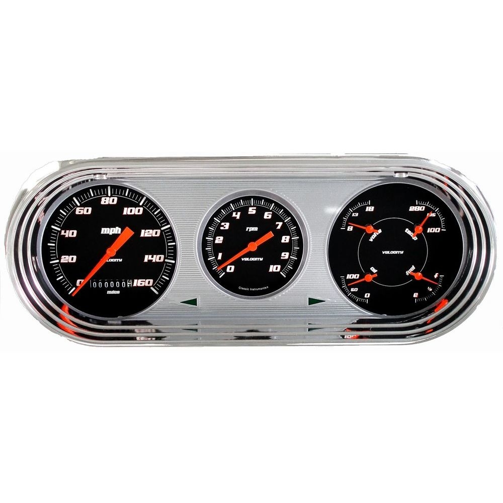 The 1963-65 Nova Velocity Black Series Gauge Package includes a 160 MPH Speedometer, 10000 rpm Tachometer and a Quad (Fuel 0-30 ohm, Oil, Temp and Volt Gauges). It comes with complete wiring harness constructed of automotive grade TXL wire, machine-crimped terminals, tech-flex sleeving and Molex main connectors. Also includes all necessary sending units and a new lens for easy installation into your existing bezel.