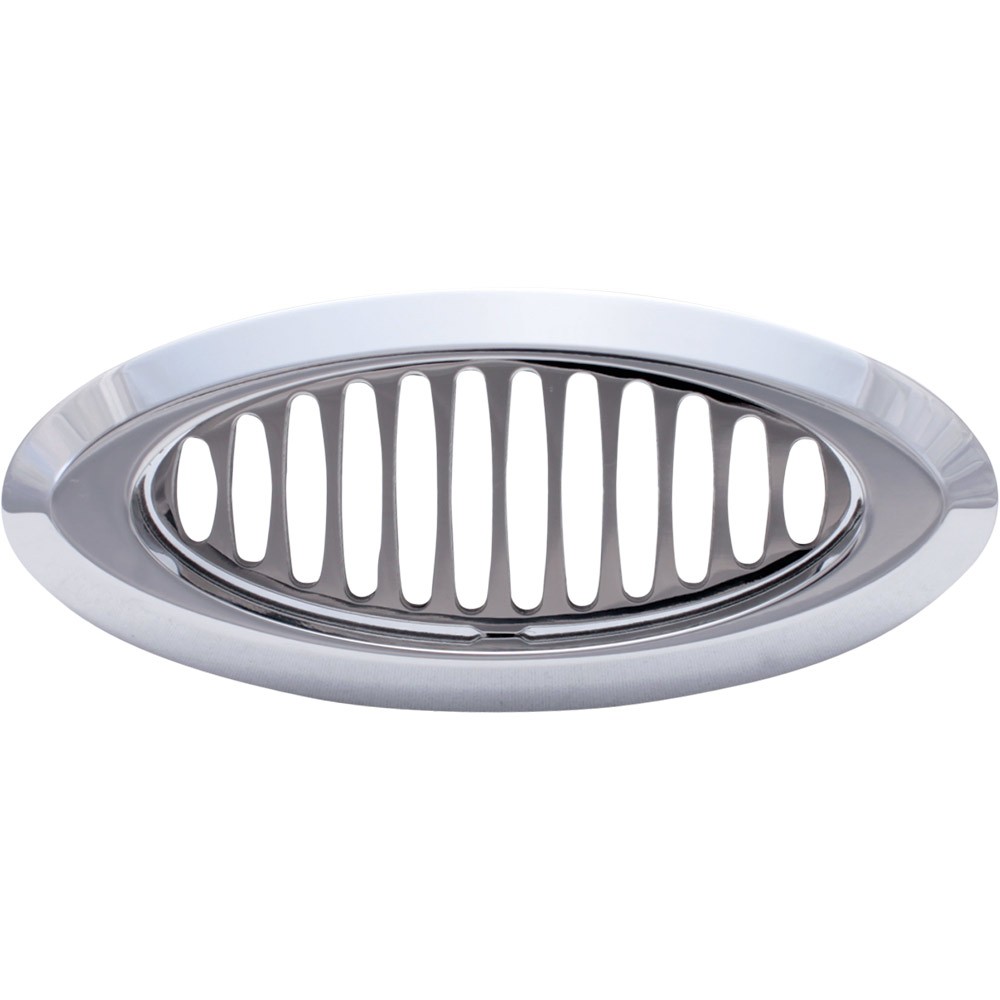 Trique's Oval A/C Vents feature a polished billet aluminum housing with polished stainless steel vents that swivel. The housing accepts a standard 2 1/2" A/C hose. This single A/C vent features a 30 degree angled bezel. Each A/C vent comes with mounting brackets and hardware.