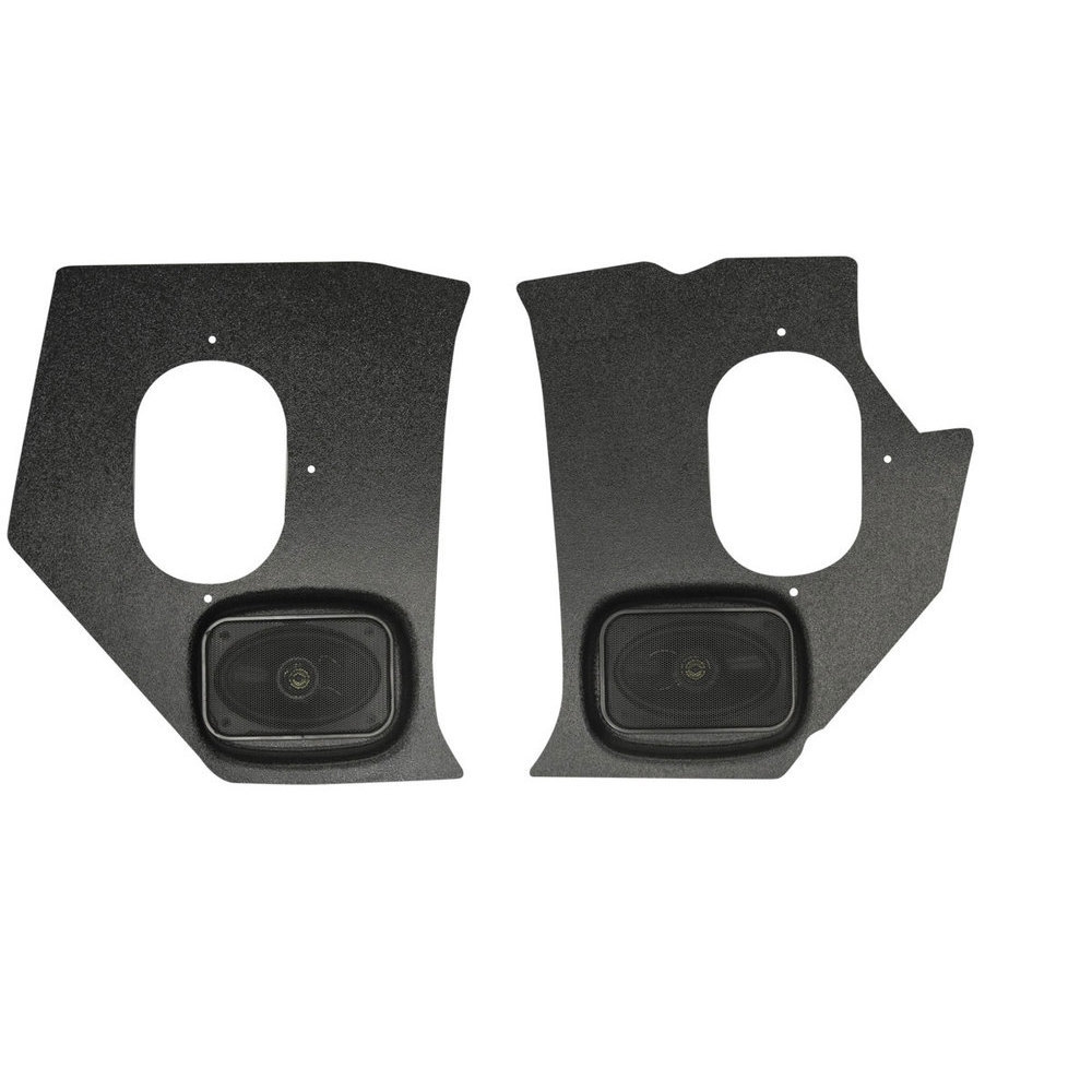 Kickpanels with speakers were developed by Custom Autosound in the 1980's to enhance the sound quality of your radio by adding custom speaker assemblies to classic cars and trucks. While their kickpanels enhance the interior appearance of your ride, they provide great sound and install with no modifications to your vehicle. They are designed to custom fit perfectly with the door panels on your classic car or truck. They are built with black ABS plastic and can be painted to match the interior of your vehicle.