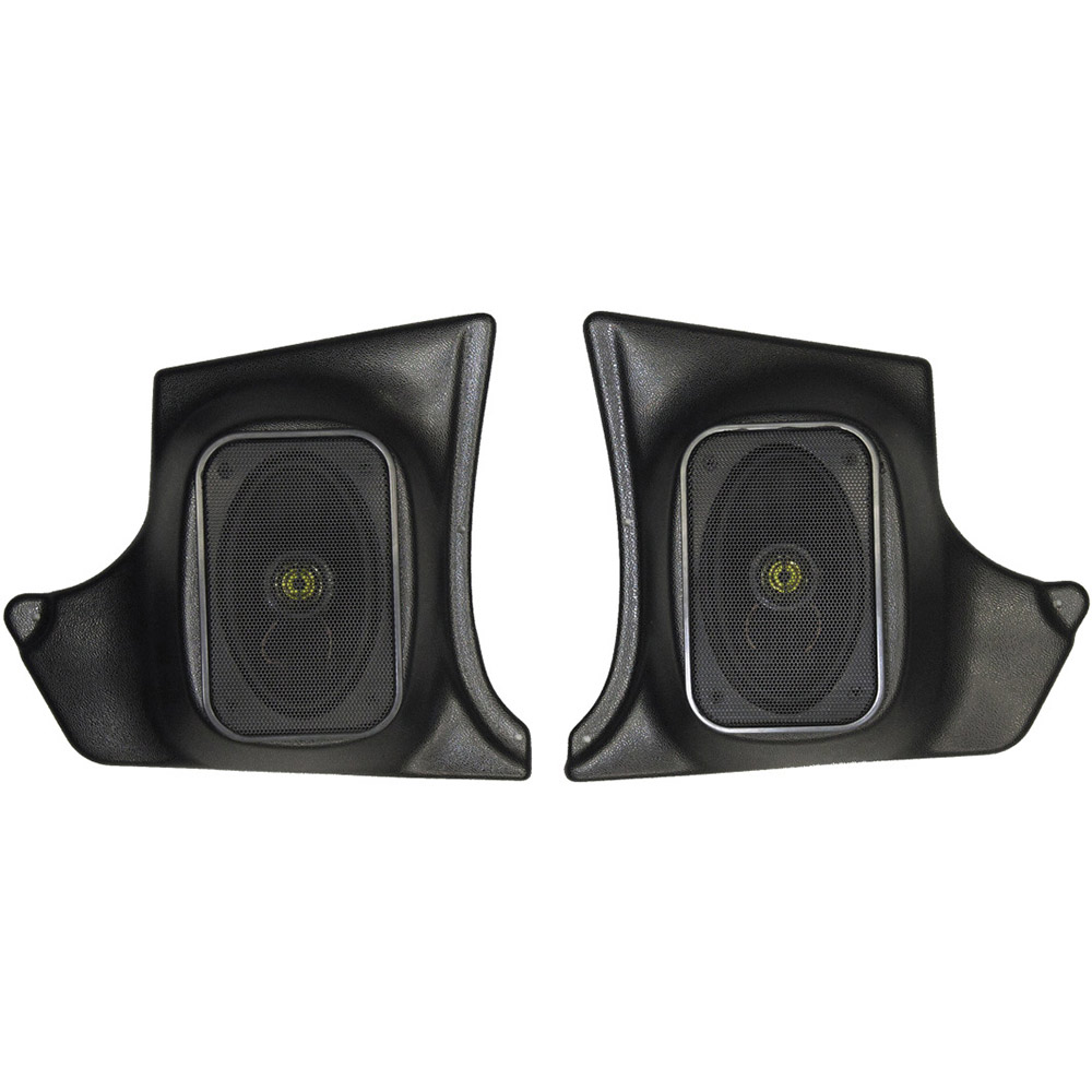 Kickpanels with speakers were developed by Custom Autosound in the 1980's to enhance the sound quality of your radio by adding custom speaker assemblies to classic cars and trucks. While their kickpanels enhance the interior appearance of your ride, they provide great sound and install with no modifications to your vehicle. They are designed to custom fit perfectly with the door panels on your classic car or truck. They are built with black ABS plastic and can be painted to match the interior of your vehicle.
