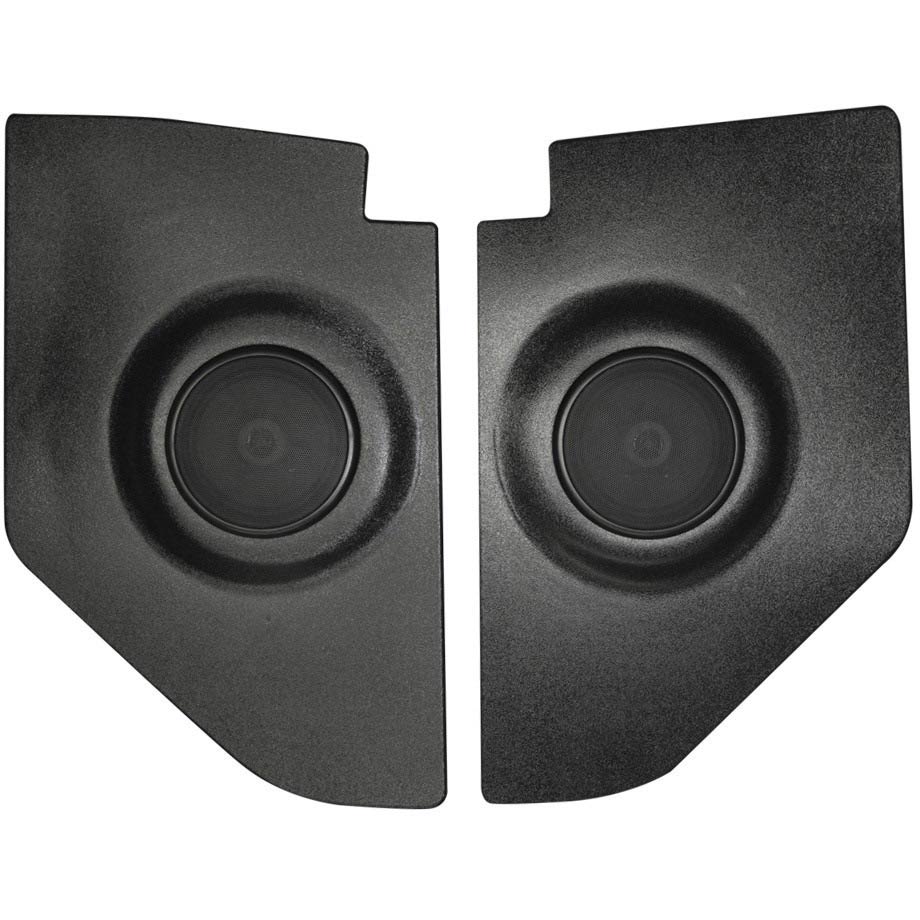 Kickpanels with speakers were developed by Custom Autosound in the 1980's to enhance the sound quality of your radio by adding custom speaker assemblies to classic cars and trucks. While their kickpanels enhance the interior appearance of your ride, they provide great sound and install with no modifications to your vehicle. They are designed to custom fit perfectly with the door panels on your classic car or truck. They are built with black ABS plastic and can be painted to match the interior of your vehicle.