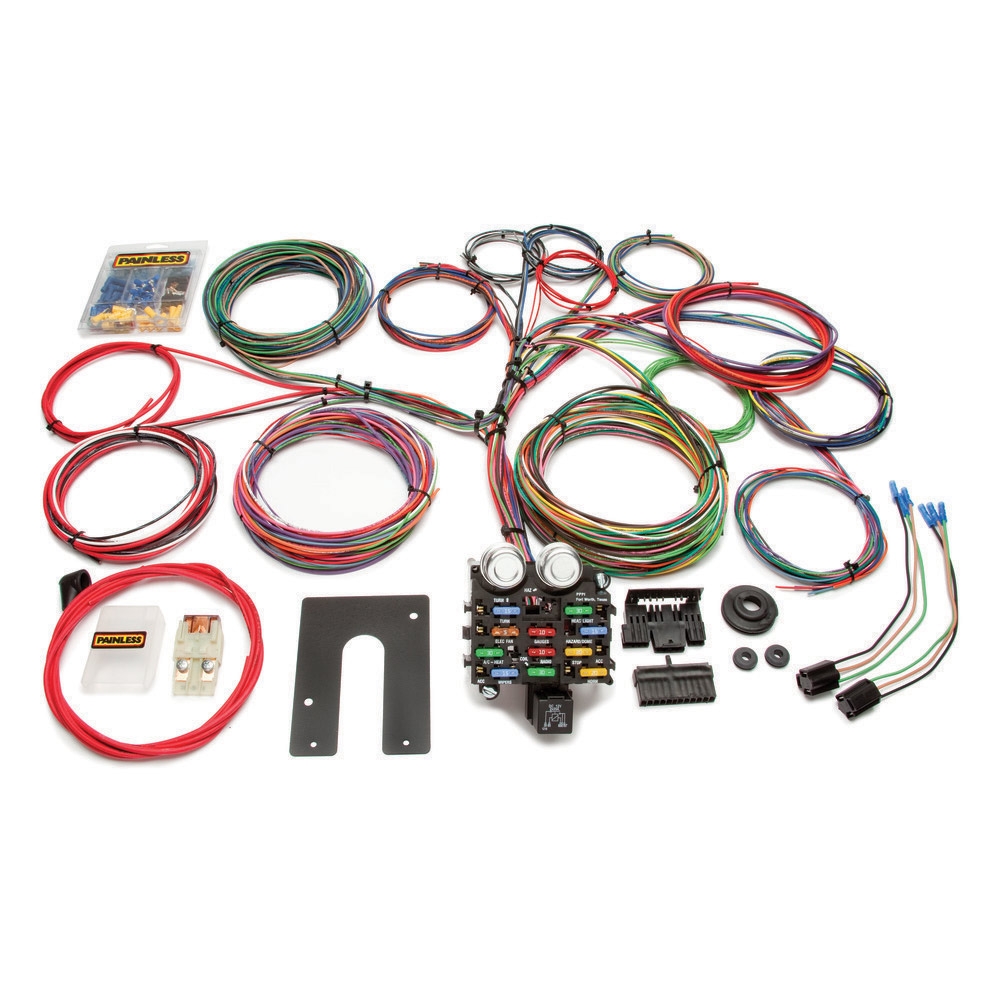 This Painless Performance customizable 21 circuit pickup chassis wiring harness provides ample wire lengths, making the wiring harness especially well-suited for trucks with long beds and extended cabs. This harness comes with open ended ignition switch wires that can easily be adapted to any ignition switch out there. For those using a GM Keyed Column, part number 10103 comes with a Pre-Terminated GM ignition switch connector. Included with this harness are the following parts; a GM engineered fuse block and Painless mounting bracket; GM turn signal connectors; pre wire plugs for the headlights and dimmer switch; and each wire is custom printed with the circuit identification as well as using GM color codes for easy installation.