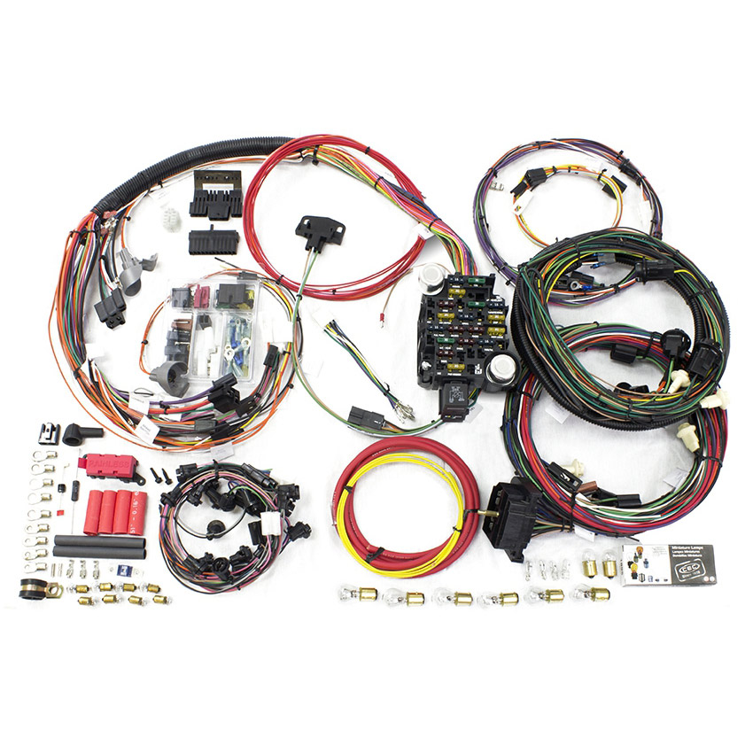 This direct fit wiring harness gives you everything you need, plus more to wire your 1968 Chevelle! Not only are there provisions for connecting standard factory components, we also provide what you will need for aftermarket components. Including options like a console sub-harness, two gauge cluster pigtails, and even a fully integrated ground circuit. This harness follows all of the same wire routing found on the factory harness which allows you to utilize the factory harness attachment points. Extra length has even been added to the headlight section to be routed behind the driver side inner fender for a cleaner look. Also available is a 120+ page manual full of color schematics, photos, and step-by-step instructions!