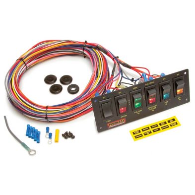 This 6 Switch Lighted Non-Fused Rocker Switch Panel w/wiring comes assembled with machine crimped spade terminals and 18FT of TXL wire per circuit. This panel is ideal for your basic racecars that only have a couple of electrical items to make them operate properly.