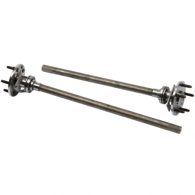 These are Heidt's 31 Spline Axles for use with 9" Ford 56" track width rear end housings. These rear axles have Chevy 4-3/4" bolt pattern with 1/2" studs and will give you 1/2" offect for your rear brakes.