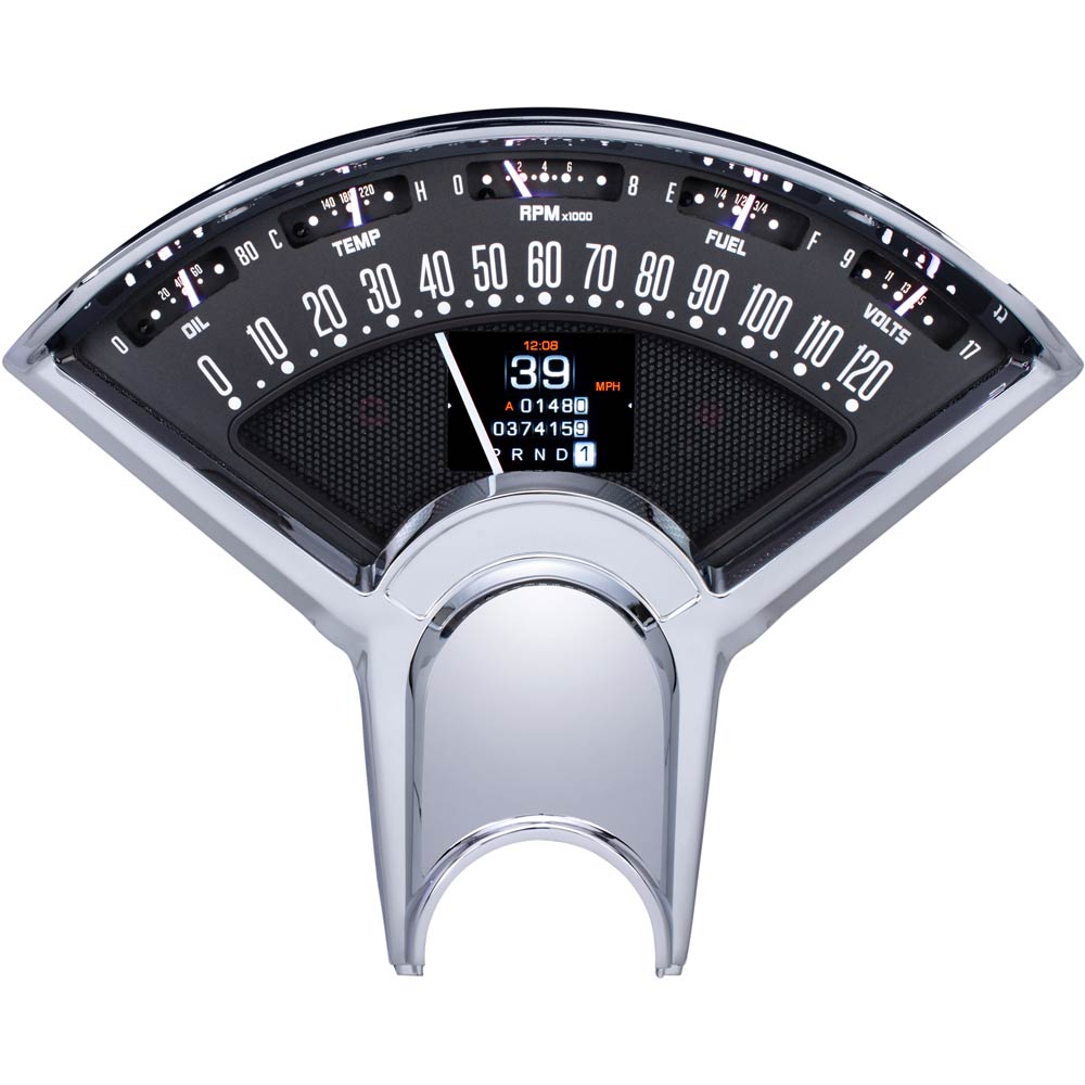 Starting from scratch, CNC machined housings are filled with electronics designed and built in-house, helping Dakota Digital once again raises the bar for aftermarket instrumentation. The high-definition TFT message centers can be fully configured to display just about any piece of information needed, or just leave the vintage-looking tumbler odometer on the screen for a totally stock appearance.